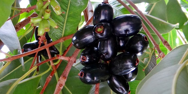 जांभळाच्या फळामध्ये औषधी गुणधर्माबरोबरच आहारमुल्य देखील फार चांगले असते. जांभळाच्या फळांचा रस मधुमेहावर अत्यंत गुणकारी आहे. पिकलेल्या फळांपासून उत्तम प्रकारचे सरबते, वाईन तसेच विविध प्रक्रियायुक्त पदार्थ तयार करता येतात. जांभळाच्या बियांमध्ये सुध्दा मोठया प्रमाणावर औषधी गुणधर्म असतो, बिया चवीला अत्यंत तुरट असतात. या बियांमध्ये पॉलीफिनॉल्स मोठया प्रमाणावर असतात. वाळलेल्या बियांच्या पावडरचा उपयोग मधुमेही रोग्यांमधील रक्तातील साखरेचे प्रमाण कमी करण्यासाठी अत्यंत गुणकारी आहे.