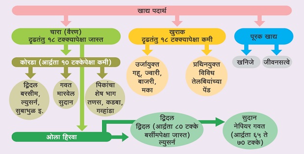 - वाळलेली वैरण: कडधान्यांच्या पिकाची, वाळलेली पाने, पाचोळा, खोड यांचा सामावेश होतो. उदा. तूर, हरभरा, वाटाणा इ.