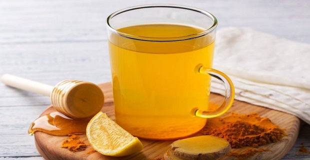 - कृती: एक ग्लास घेऊन त्यात अर्धे लिंबू पिळावे, त्यात हळद आणि गरम पाणी मिसळून चांगल्या प्रकारे मिसळावे. त्यात चवीनुसार मध मिसळावा. हळद काही वेळाने खाली बसते त्यामुळे पाणी पिण्यापूर्वी हलवून मग प्यावे.