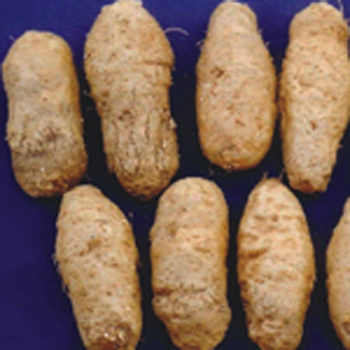 - साठवण: पुढील हंगामध्ये बियाणे म्हणून कंद वापण्यासाठी लिटरभर पाण्यात २ ग्रॅम बाविस्टीन व २ मिली मोनोक्रोटोफॉस या प्रमाणात द्रावण तयार करुन त्यामध्ये कंद बियाणे किमान अर्धा तास बुडवुन काढावेत. असे कंद मडक्यात, राखेत किंवा वाळूमध्ये साठवून ठेवावेत.