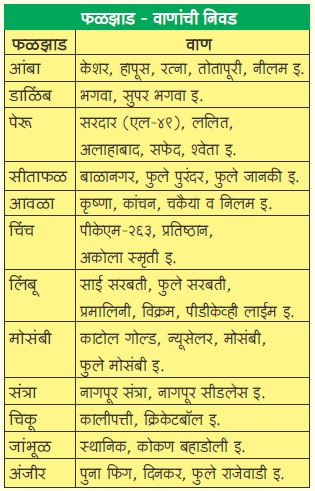 फळबागांपासून काही वर्षाच्या मेहनतीनंतर उत्पन्न देणारे झाड न मिळाल्यास ते तोडून दुसरे लावणे आर्थिकदृष्ट्या परवडत नाही. फळझाडांची कलमे, रोपांच्या निवडीवर फळांची गुणवत्ता आणि फळबागेचे एकूण यश अवलंबून असते म्हणून बागेकरिता उत्कृष्ट आणि गुणवत्ता माहित असलेली दर्जेदार आणि खात्रीशीर कलमे/रोपे आणावी. शक्यतो कृषी विद्यापीठ किंवा शासकीय रोपवाटिकेमधून रोपे आणावीत. शक्य नसल्यास आपल्या माहितीतील शासकीय परवानाधारक रोपवाटिकेतून कलमे/रोपे घ्यावीत. कलमांची निवड करताना ती किती उंच आहेत, यापेक्षा ती योग्य त्या जातीच्या मातृवृक्षापासून केलेली आहेत कि नाहीत याबाबींकडे अधिक लक्ष द्यावे. रोपे घेताना कलम बांधलेली आहेत व जोड पूर्णपणे जुळलेले आहेत याची खात्री करून घ्यावी. त्याच बरोबर ती वाढीला जोमदार आहेत, निरोगी आहेत आपणास पाहिजे त्याच जातीची आहेत याची खात्री करूनच घेतली पाहिजे.