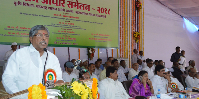 महात्मा फुले कृषी विद्यापीठ, कृषी विभाग आणि आत्मा, अहमदनगर यांच्या संयुक्त विद्यमाने महात्मा फुले कृषी विद्यापीठ, राहुरी येथे आयोजित किसान आधार संमेलनातील प्रदर्शन, पशुप्रदर्शन, पीक प्रात्यक्षिके आणि शेतकरी शास्त्रज्ञ चर्चासत्राचे उद्घाटन करताना श्री. पाटील बोलत होते. अध्यक्षस्थानी पालकमंत्री प्रा. राम शिंदे उपस्थित होते. प्रास्ताविक महात्मा फुले कृषि विद्यापीठाचे कुलगुरु डॉ. के.पी. विश्वनाथा यांनी केले.