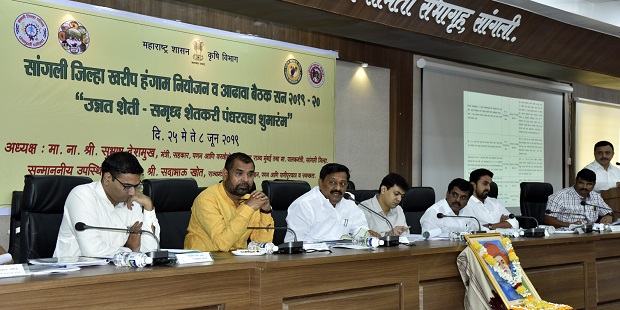 जिल्हा अधीक्षक कृषी अधिकारी राजेंद्र साबळे म्हणाले, खरीप हंगाम 2019-20 चे नियोजन करण्यात आले असून यामध्ये उत्पादनामध्ये वाढ, खर्चात बचत आणि काढणीपश्चात व्यवस्थापन यासाठी प्रकल्पाआधारित पीक प्रात्यक्षिकांचे नियोजन करण्यात आले आहे. क्रॉपसॅप संलग्न शेतीशाळा, राष्ट्रीय फलोत्पादन अभियान, राष्ट्रीय कृषी विकास आराखड्याची प्रभावी अंमलबजावणी, केंद्र व राज्य पुरस्कृत योजनांची अंमलबजावणी, कृषी उत्पादन निर्यात वृद्धी, मृद व जलसंधारण या अनुषंगाने खरीप हंगामाचे नियोजन करण्यात आले आहे. यावेळी आमदार शिवाजीराव नाईक, आमदार सुरेश खाडे, आमदार अनिल बाबर, आमदार विलासराव जगताप यांनी खरीप हंगामातील कार्यवाही बाबत मौलिक सूचना केल्या.