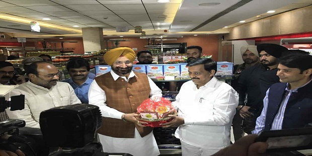 चंदीगड येथील विक्री केंद्रांवर आणि लुधियाना येथे आयोजित पंजाब मार्कफेड प्रदर्शनात ‘महाफार्म’चा शुभारंभ करण्यात आला. त्यावेळी पंजाबचे सहकार व कारागृह मंत्री सुखजिंदर सिंग, खासदार संजय पाटील, पंजाब मार्कफेडचे व्यवस्थापकीय संचालक वरूण रूजम, चेअरमन अमरजित सम्रा, महाराष्ट्र सहकार विकास महामंडळाचे व्यवस्थापकीय संचालक संजय पोकळी, फळ तंत्रज्ञान प्रमुख चंद्रकांत माळी, सहकार मंत्र्यांचे विशेष कार्य अधिकारी डॉ. राजाराम दिघे, सागर पवार यांच्यासह मान्यवर उपस्थित होते.