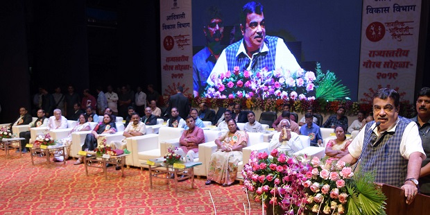 केंद्रीय परिवहन मंत्री गडकरी म्हणाले, आदिवासी विकास विभागाच्या वतीने आदिवासी बांधवांच्या कल्याणाकरिता विविध योजना प्रभावीपणे राबविल्या जात आहेत. देशातही 150 मागास जिल्हयांमध्ये विविध विकासकामे प्रगतीपथावर असून यामध्ये आदिवासीबहुल जिल्हयांचा प्रामुख्याने समावेश आहे. आदिवासी बांधवांच्या शैक्षणिक, सामाजिक व आर्थिक विकासावर भर देवून त्यांचा सर्वांगिण विकास साधण्यात येत आहे. खादी आणि ग्रामोद्योगाच्या माध्यमातून मध संकलनासाठी मध पेट्यांकरिता शंभर कोटी रुपयांचे भरीव अनुदान उपलब्ध करुन देण्यात आले आहे. आदिवासी क्षेत्रातील शेतकऱ्यांना जैव इधनासाठी अखाद्य तेलबियांचे उत्पन्न घेणे यापुढे निश्चितच किफायतशीर ठरणार आहे. यातून मोठ्या प्रमाणावर रोजगार निर्मितीलाही चालना मिळेल. आदिवासी विद्यार्थ्यांनी आता रोजगाराभिमुख शिक्षणाकडे वळवून स्वयंरोजगार निर्माण करावा. आदिवासीबहुल भागातील विद्यार्थ्यांसाठी वाहनचालक प्रशिक्षणासारख्या योजनाही राबविण्यात येत आहेत. मिशन शौर्यअंतर्गत एव्हरेस्ट शिखर सर करणाऱ्या आदिवासी युवकांचा गौरवही श्री. गडकरी यांनी केला.