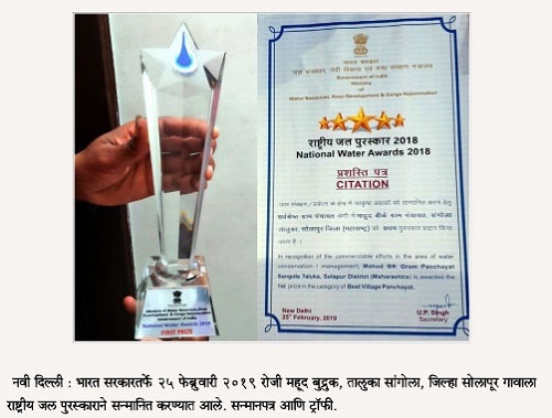 राष्ट्रीय जल पुरस्काराने सन्मानित